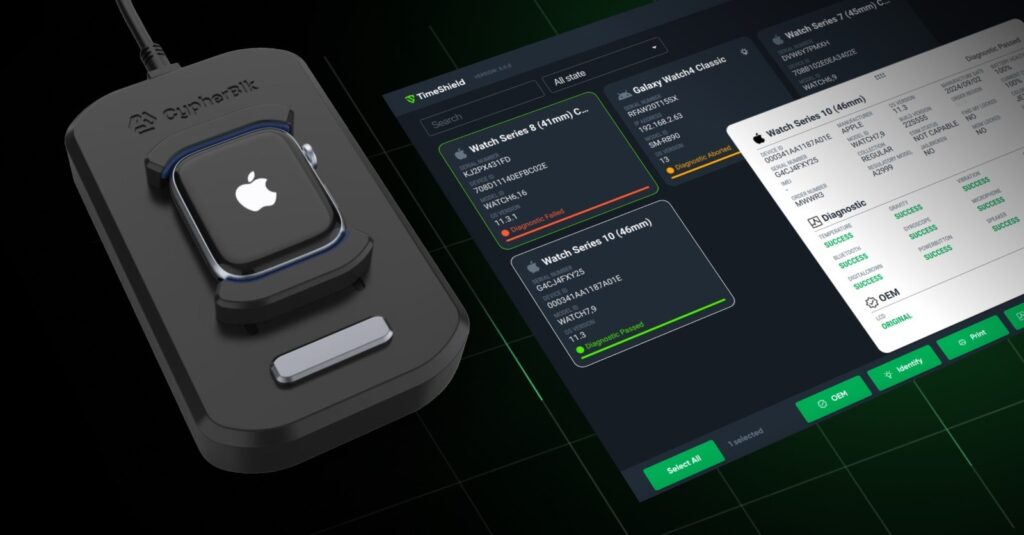 Using the latest innovation from CypherBlk to process, test and grade used smart watches.